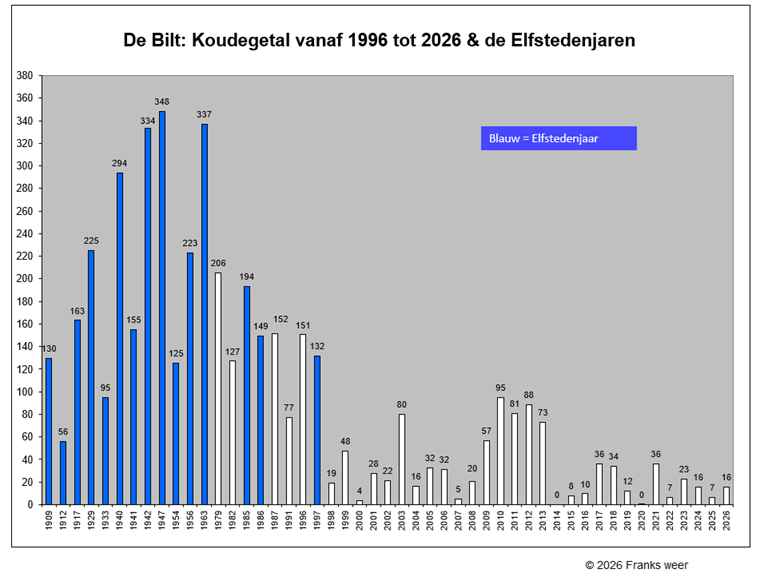 Lijst jaren met koude getallen inclusief Elfstedenjaren ( periode 1 november tot 31 maart)