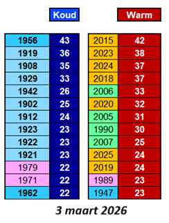 Anders gezegd: het maximaal van 2196 records is over de jaren verdeeld (2196 = Voor de warme – én de koude records ieder 3 x 366 dagen).