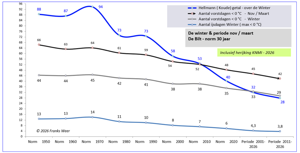 – Daalt het aantal ijsdagen van 13 naar 6, welke nog steeds dalende is.