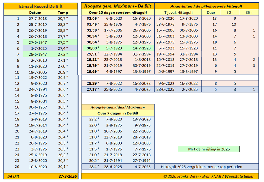 Door herijking in 2026 van de hittegolven (de temperatuur) zijn gegevens/tabellen/grafieken van voor 1951 al zoveel mogelijk aangepast.