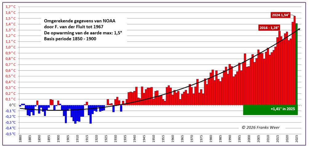 – NOAA staaf diagram omgerekend naar de periode 1850-1900 (naar de klimaatnorm Parijs) én die van Copernicus – 2025