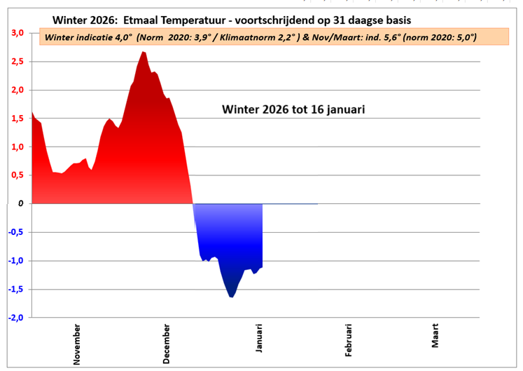 Grafiek van de winter (november 2025 /maart 2026) – tot 16 januari 2026