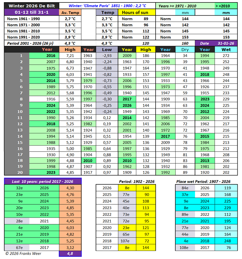 – Update tabel: de warmste wintermaanden en de tabel met vorstdagen en ijsdagen, anno (en met december) 2025