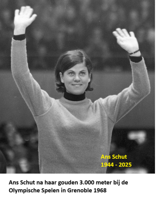 Wie ‘Ard en Keessie’ kent kent ook Stien, Carry en Ans. De Nederlande schaatsters die de wereld eind jaren 60 veroverden (zonder echte steun van de schaatsbond) met goud op de olympische spelen (1968-1972). Ans won de 3000 meter in 1968 te Grenoble, ook had ze het wereldrecord op de 1500 en 3000 meter in 1969. Het waren mooie tijden, toen jezelf sneller de tijden kon omrekenen voor de volgende afstand bij WK’s dan dat Theo Koomen deze door kreeg. De mooie herinnering blijft, rust zacht Ans.