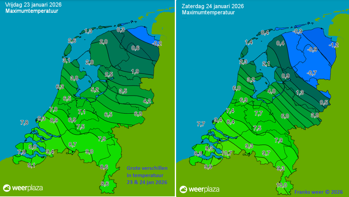 Grote temperatuursverschillen op 23 en 24 januri 2026 – de maxima