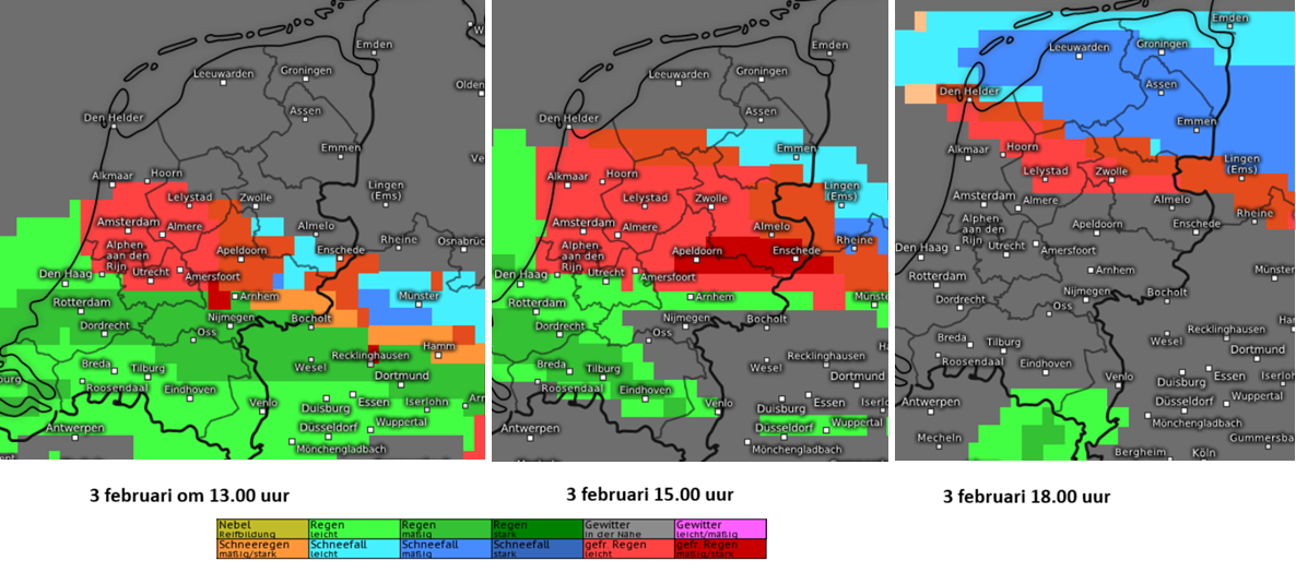 Bij een oosten wind is het rond 3 februari tijdelijk kouder worden in Noord Nederland, met matige vorst. Als op 3 februari zachte lucht uit het zuiden opdringt is er kans op ijzel (en ook sneeuw) in het midden en noorden van het land. Houdt zelf ook de vinger aan de pols.